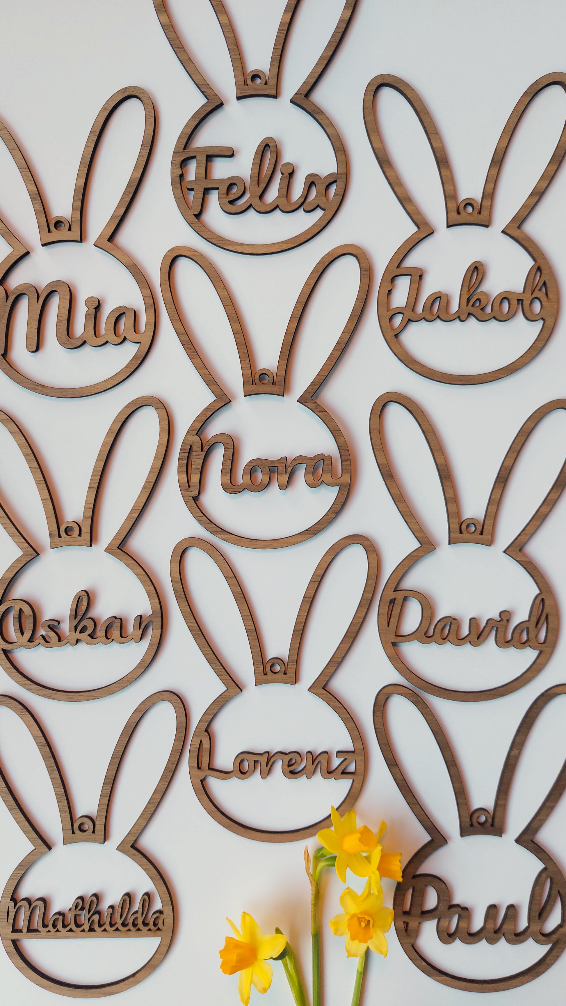 🐰 Du suchst nach süßer Frühlingsdeko oder einem einzigartigen Ostergeschenk? Dann ist dieser personalisierter Anhänger aus elegantem Walnuss-Holz genau das Richtige für Dich! Mit seinem liebevollen und modernen Design ist er nicht nur ein Blickfang zuhause, sondern auch eine ideale Geschenkidee zu Ostern. Lass jetzt Deine persönlichen Häschen mit Namen gestalten und bereite Deinen Liebsten eine besondere Freude!