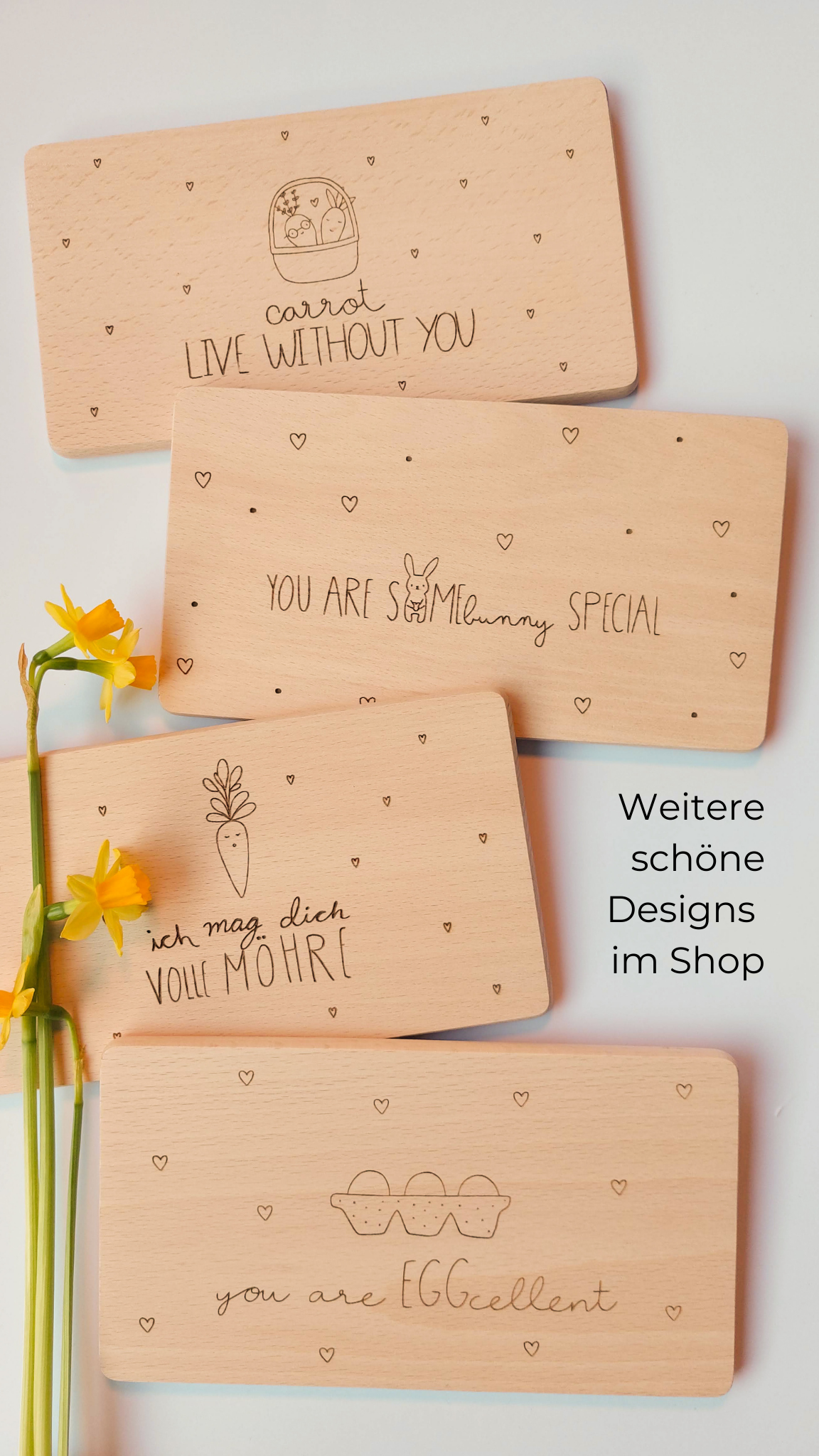 🥕 Du möchtest jemandem sagen, dass er/sie etwas ganz Besonders ist? Dann ist dieses Brettchen aus robustem Buchenholz ein tolles Geschenk (nicht nur zu Ostern) und ein echter Hingucker, egal ob beim Frühstück, beim Vesper oder beim Schnibbeln in der Küche. Das Brettchen mit dem süßen Design wird garantiert immer wieder ein Lächeln ins Gesicht zaubern.